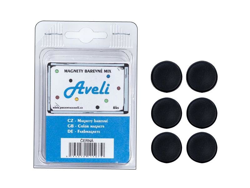 Magnety pro tabule Aveli v barevných rozlišeních. Balení 6 kusů magnetů v černé barvě.