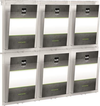 Držák na katalogy "Placativ", transparentní, nástěnný, A4, 6 oddílů, HELIT H6812002