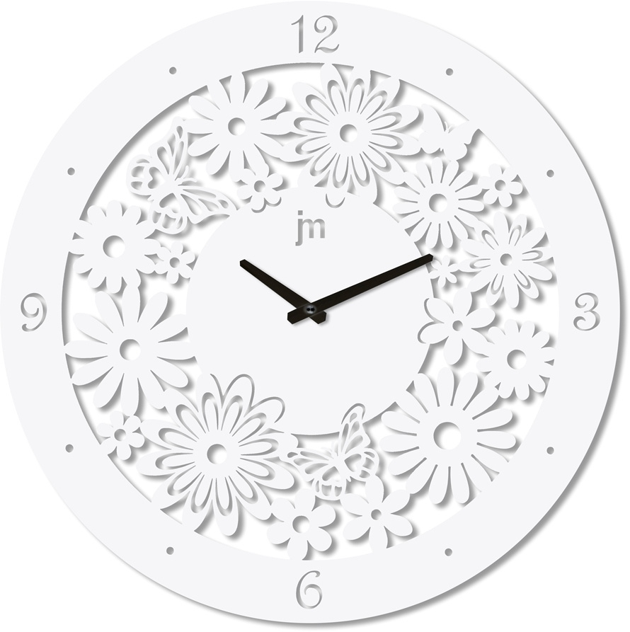 Kovové lakované hodiny v romantickém designu, vyřezávané laserem
