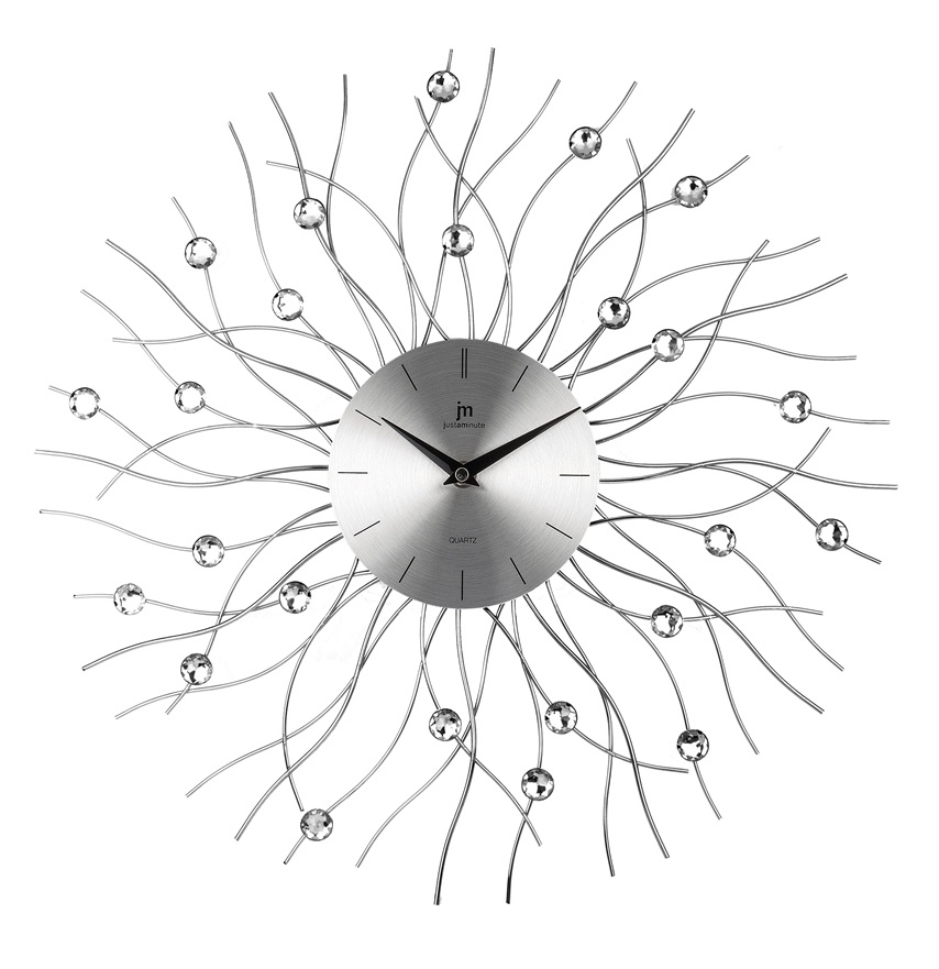 Materiál hodin: leštěný nerezový kov a skleněné krystaly.