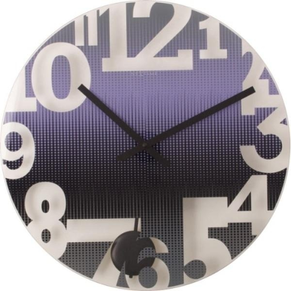 Moderní skleněné designové hodiny, s různě velikými číslicemi.