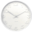 Minimalistické hodiny s embosovanými čísly a chromovanými ručičkami.