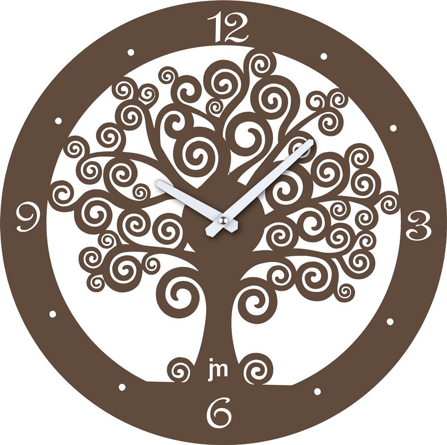 Kovové lakované hodiny v romantickém designu - symbol strom života, vyřezávané laserem