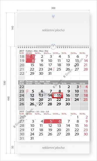 Kalendář nástěnný 2017 - Tříměsíční šedý s laší