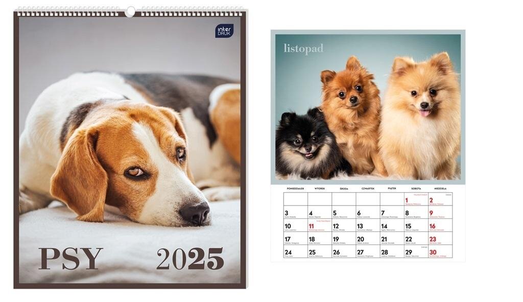 Kalendarz 2025 ścienny planszowy 33,5x40cm Psy (polsky)