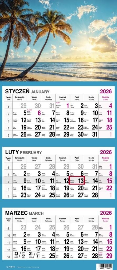 Kalendarz 2026 Trójdzielny Palmy (polsky)