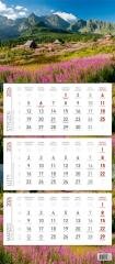 Kalendarz wiszący ścienny z kalendarium w układzie trójdzielnym, plecki i główka wykonane z jednego arkusza kartonu. Kalendarz składany do formatu A4.