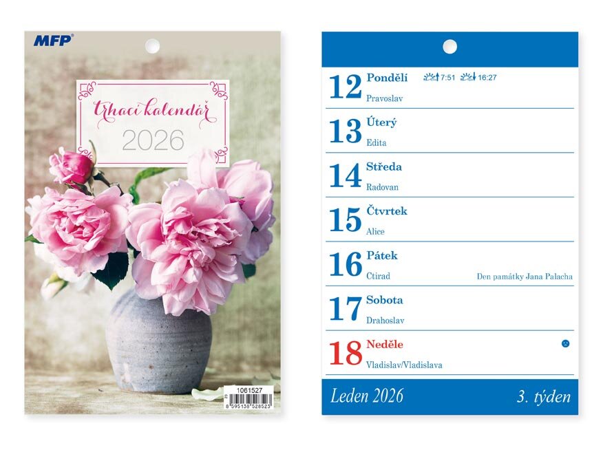 - Typ kalendáře: nástěnný, trhací s týdenním kalendáriem.