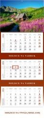 Kalendarz wiszący ścienny z kalendarium w układzie trójdzielnym z ozdobną główka, wypukłą i lakierowaną. Kalendarz składany do formatu A4.