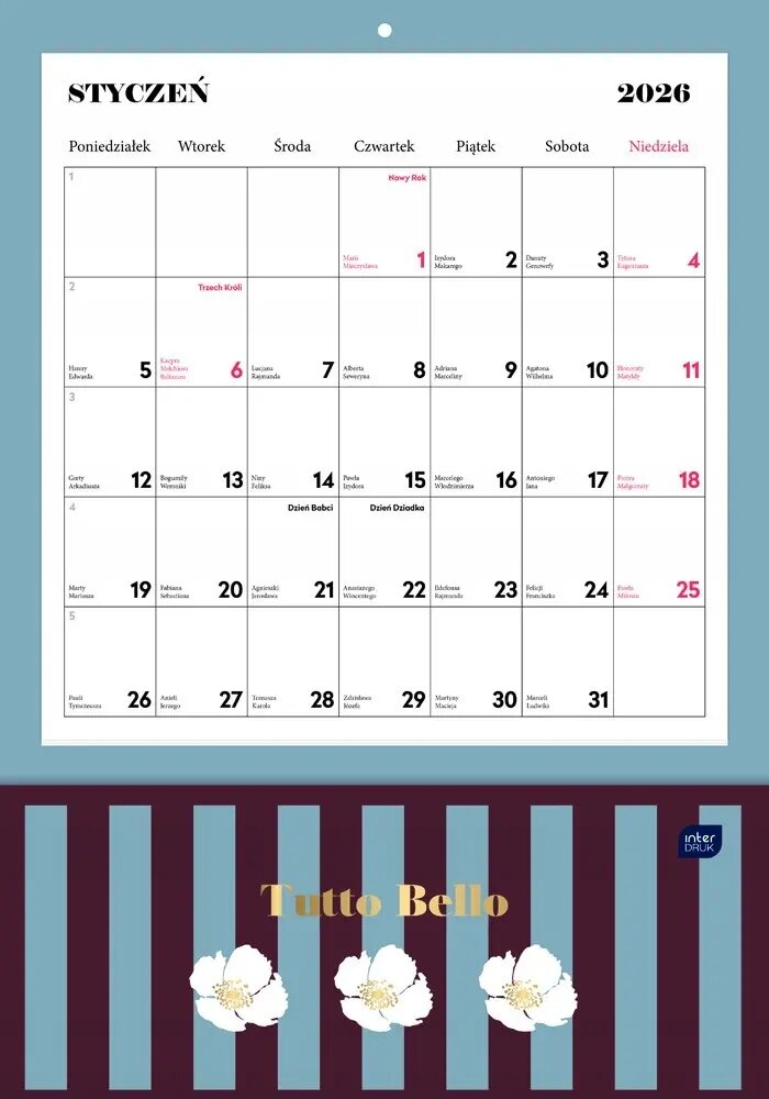 Kalendarz ścienny z kieszonką 2026 28x40 cm Tutto