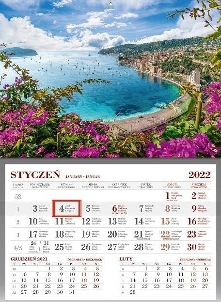 Kalendarz 2022 Ścienny Jednodzieny Lazurowe Wyb. (polsky)