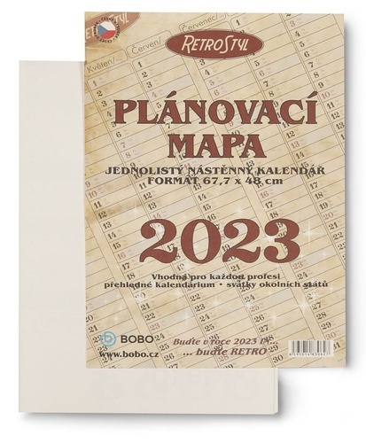 Plánovací roční mapa retro skládaná 2023 - nástěnný kalendář