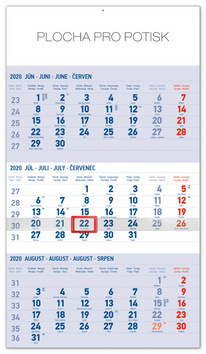 Nástenný kalendár 3mesačný štandard modrý so slovenskými menami 2020