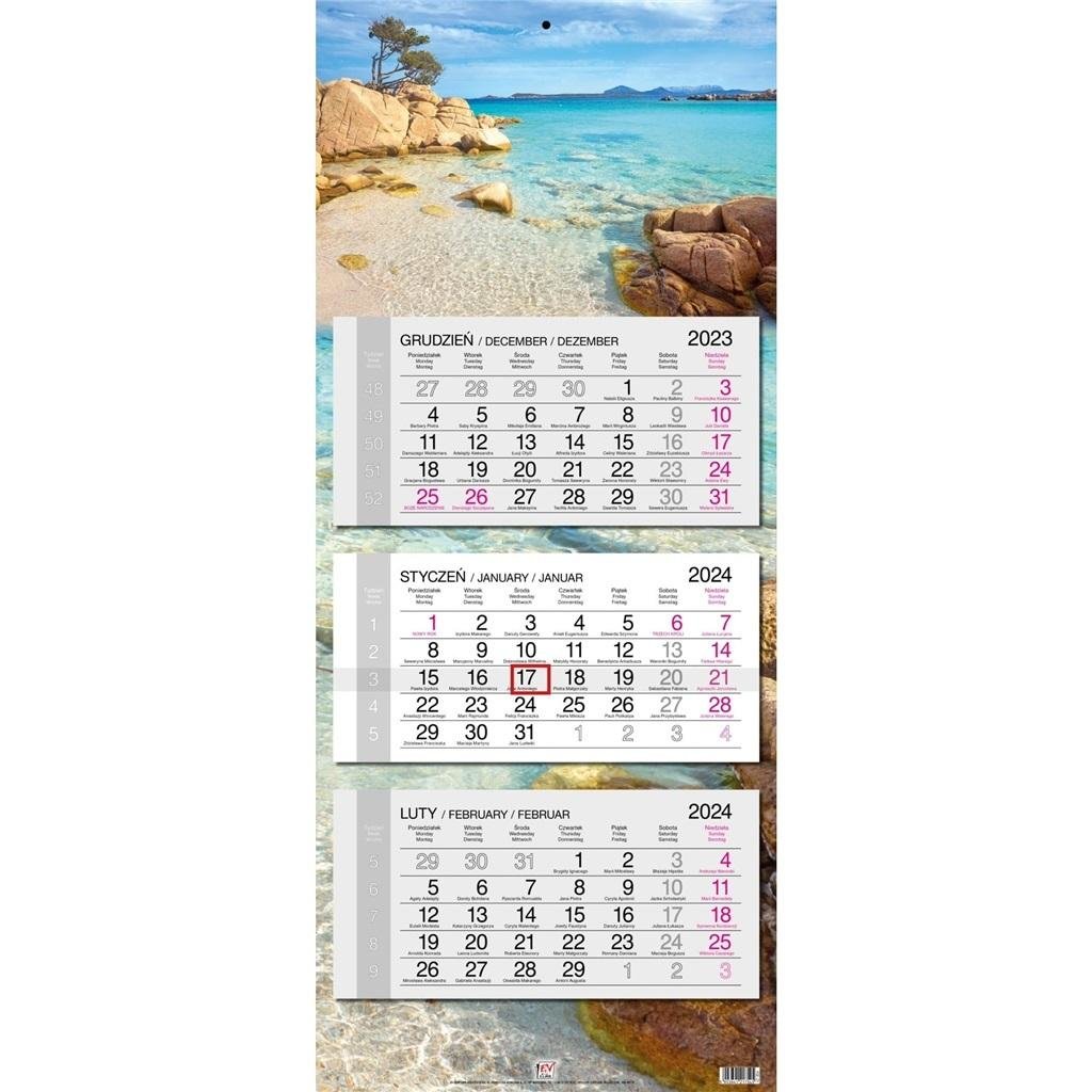 Kalendarz ścienny, trójdzielny z główką płaską z zadrukiem na całych pleckach: