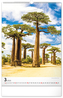 Nástěnný kalendář s fotografiemi pestrých scenérií s dominantami majestátních stromů z celého světa. Fotografie jsou doplněny univerzálním kalendáriem na bílém pozadí.