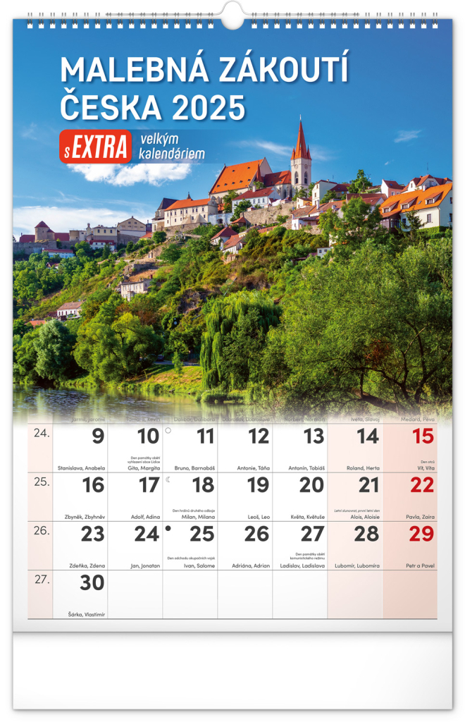 Nástěnný kalendář Malebná zákoutí Česka 2025 nabízí extra velké kalendárium o rozměrech 33 x 46 cm, takže na každý den snadno zaznamenáte své plány a poznámky. Barevné odlišení nedělí a svátků zajišťuje okamžitou orientaci a usnadňuje plánování. Kvalitní fotografie ve vysokém rozlišení přinášejí každému měsíci jedinečnou atmosféru a připomenou vám nejkrásnější kouty České republiky.