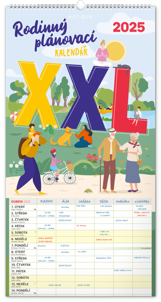 - Velký formát XXL 33 × 64 cm umožňuje pohodlné plánování pro celou rodinu.