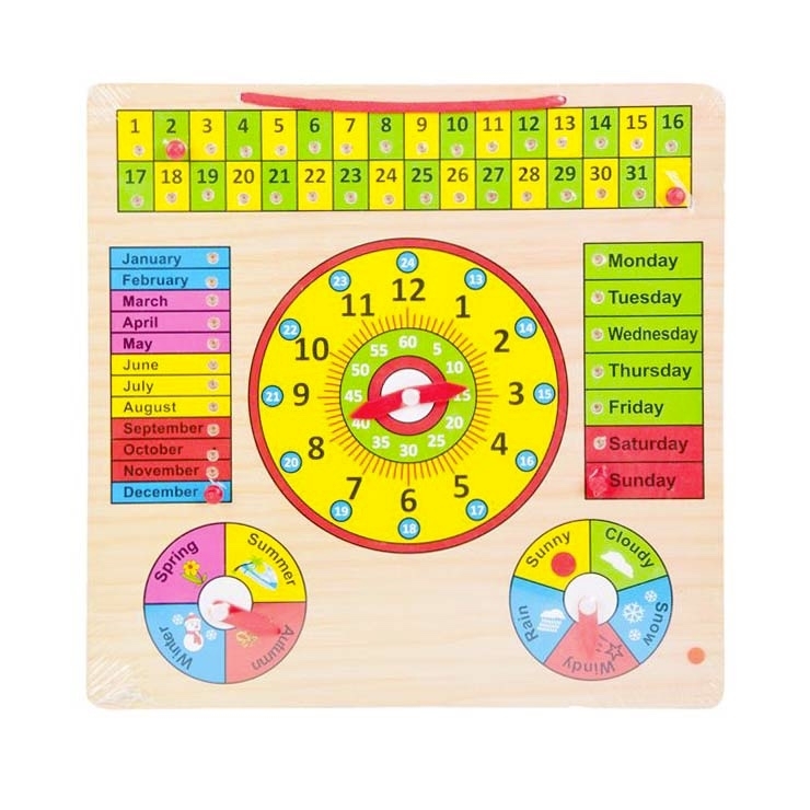 Výhody produktu: hodinky mají pohyblivé ruce, aby se dítě mohlo naučit správné hodiny, držadlo, hodinky ve formě tabulí s dalšími dny v týdnu, měsíce a roční období v angličtině a čísla od 1 do 31. Čas nás provází v každém okamžiku našeho života, takže stojí za to, aby se naše děti seznámili s hodinkami již od útlého věku.