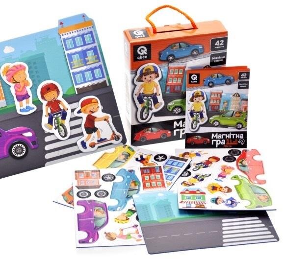 Wybierz się na wycieczkę po mieście z magnetyczną grą City od qbee! W zestawie czekają na Ciebie 42 magnesy z wizerunkami domów, samochodów i mieszkańców miasta korzystających z różnych środków transportu. Tablica magnetyczna pozwala na dowolne układanie elementów, tworząc niepowtarzalne pejzaże miast i fascynujące opowieści o życiu metropolii. Gra rozwija wyobraźnię, motorykę małą i kreatywne myślenie. Maluchy mogą uczyć się nowych słów i wyobrażać sobie sytuacje, w których transport i ludzie odgrywają kluczową rolę. Miasto zapewni wiele godzin świetnej zabawy, ale będzie też świetną zabawą do wspólnej zabawy z rodzicami lub znajomymi.