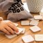 Do zestawu dołączony jest lniany woreczek w kolorze szarym, z nadrukowaną grafiką. Nadruk wykonaliśmy ręcznie za pomocą sitodruku.