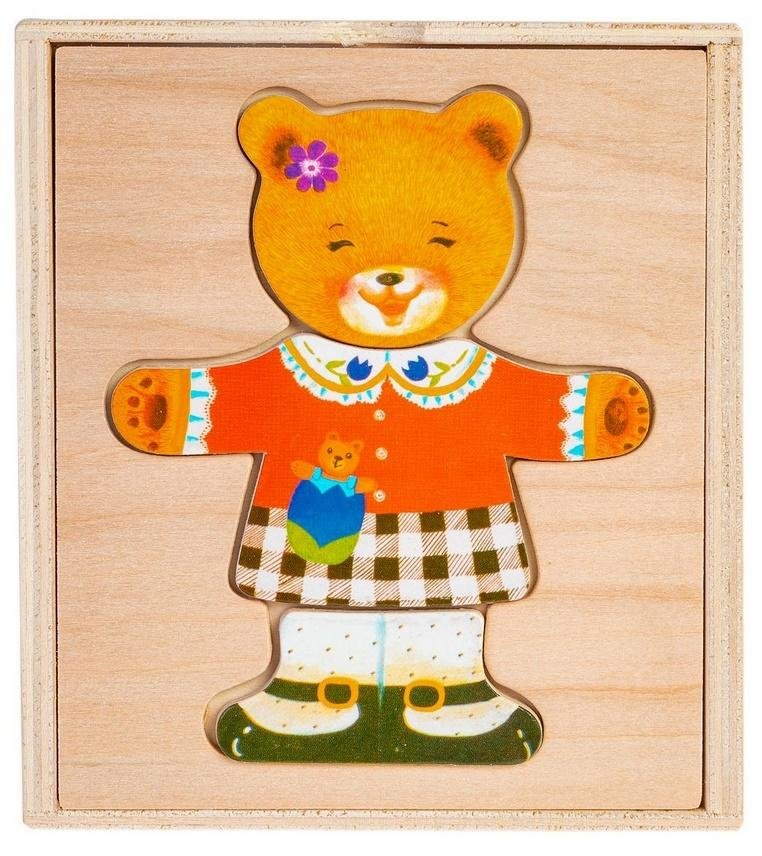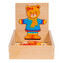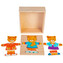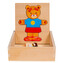 Drewniana układanka to wesoły miś dziewczynka do układania. Można zmienić jej nastrój lub ubranie. Wszystkie elementy umieszczone są w drewnianym pudełku, co ułatwia utrzymanie porządku po skończonej zabawie. Pudełko ma również funkcję formy na której układamy odpowiednie elementy.