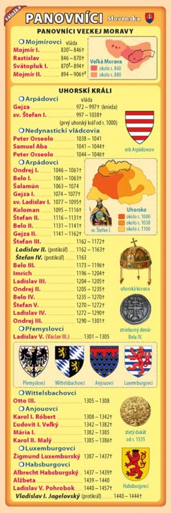 Záložka obsahuje prehľad všetkých panovníkov a prezidentov Slovenska od Veľkej Moravy až po súčasnosť. číst celé