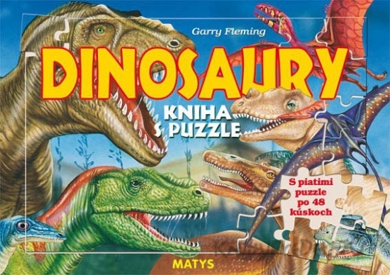 Kniha s puzzle je krásne ilustrovaná zbierka piatich 48-dielnych obrázkových skladačiek, na ktorých je zachytená veľkoleposť rozličných druhov dinosaurov.