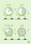 Znalost hodin se po dětech často brzy vyžaduje, ale mnohým dělá potíže. V pěti úrovních – celé hodiny, půlhodiny, čtvrthodiny, pětiminuty a minuty – si děti hravě procvičí polohu hodinových ručiček, zápis času i hledání chyb. číst celé