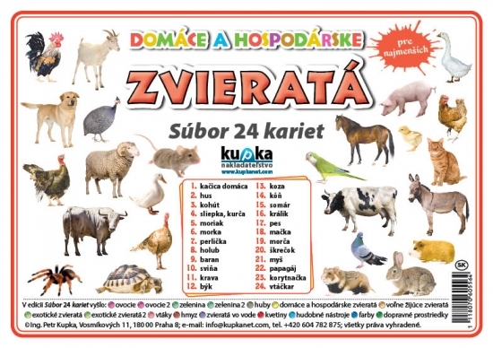Súbor 24 kariet - zvieratá (domáce a hospodárske)