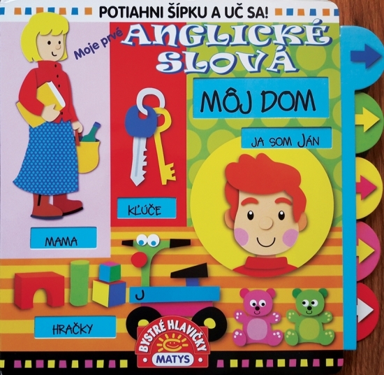 Séria interaktívnych kníh pre deti pomáha zábavnou formou pri učení angličtiny. Najprv prečítajte slová na strane v slovenčine, potom potiahnite šípky a slová sa premenia na anglické. Tiež si môžete spolu zahrať hádanku, aké slovo sa ukáže po potiahnutí šípky.