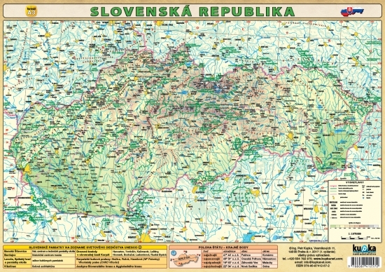 Všeobecnozemepisná mapa Slovenskej republiky so súborom doplnkových mapiek, tabuliek a grafov – administratívna mapa, zemepisné rekordy Slovenska, obyvateľstvo, poľnohospodárstvo a hospodárstvo v aktuálnych číslach. číst celé