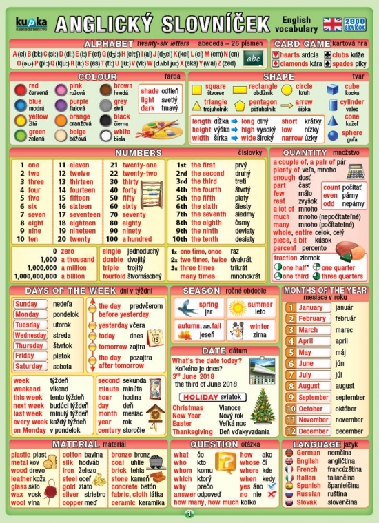 Ilustrovaný anglicko-slovenský slovníček s 2.800 slovíčkami v 57 témach ucelene pokrýva základnú slovnú zásobu. Praktický formát skladačky s laminovanou úpravou. číst celé