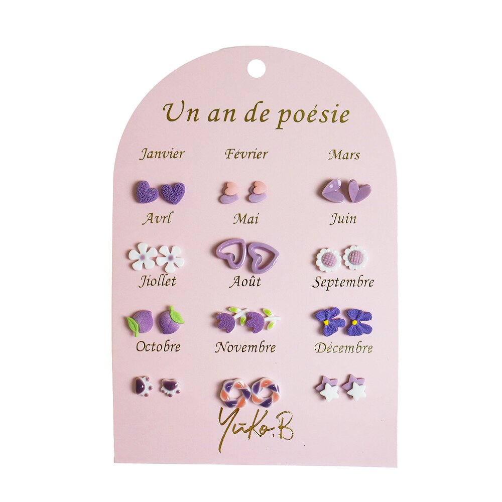 Náušnice na každý mesiac Fialové 12 párov