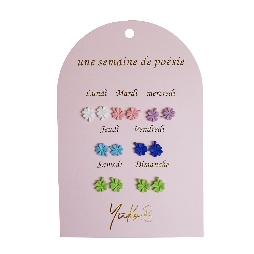 Náušnice Štvorlístok od francúzskej značky Yuko B. sa stanú jedinečným doplnkom pre deti i dospelých. Všetkých 7 párov náušníc nájdete v jednej darčekovej sade. Náušnice sú vhodné ako malý darček pre všetkých, ktorí milujú byť zladení do posledného detailu.