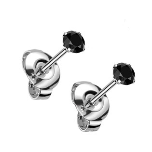 Titanové náušnice dekorované zirkony černé barvy
