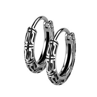 - Design: elegantní černá barva s ornamentálním zdobením dodává náušnicím osobitý ráz.