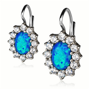 Stříbrné náušnice zdobené syntetickými opály a zirkony