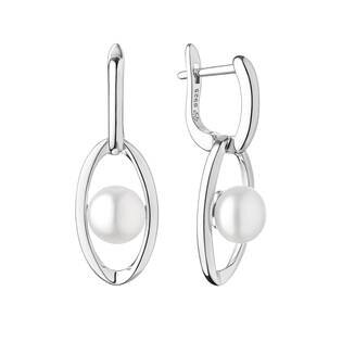 Dámské visací náušnice dekorované přírodními perlami bílé barvy