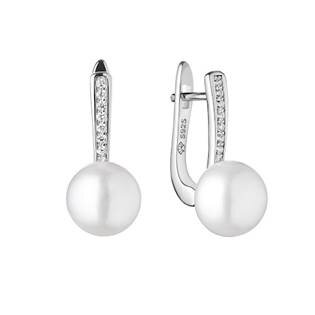 Překrásné dámské náušnice dekorované přírodními perlami bílé barvy