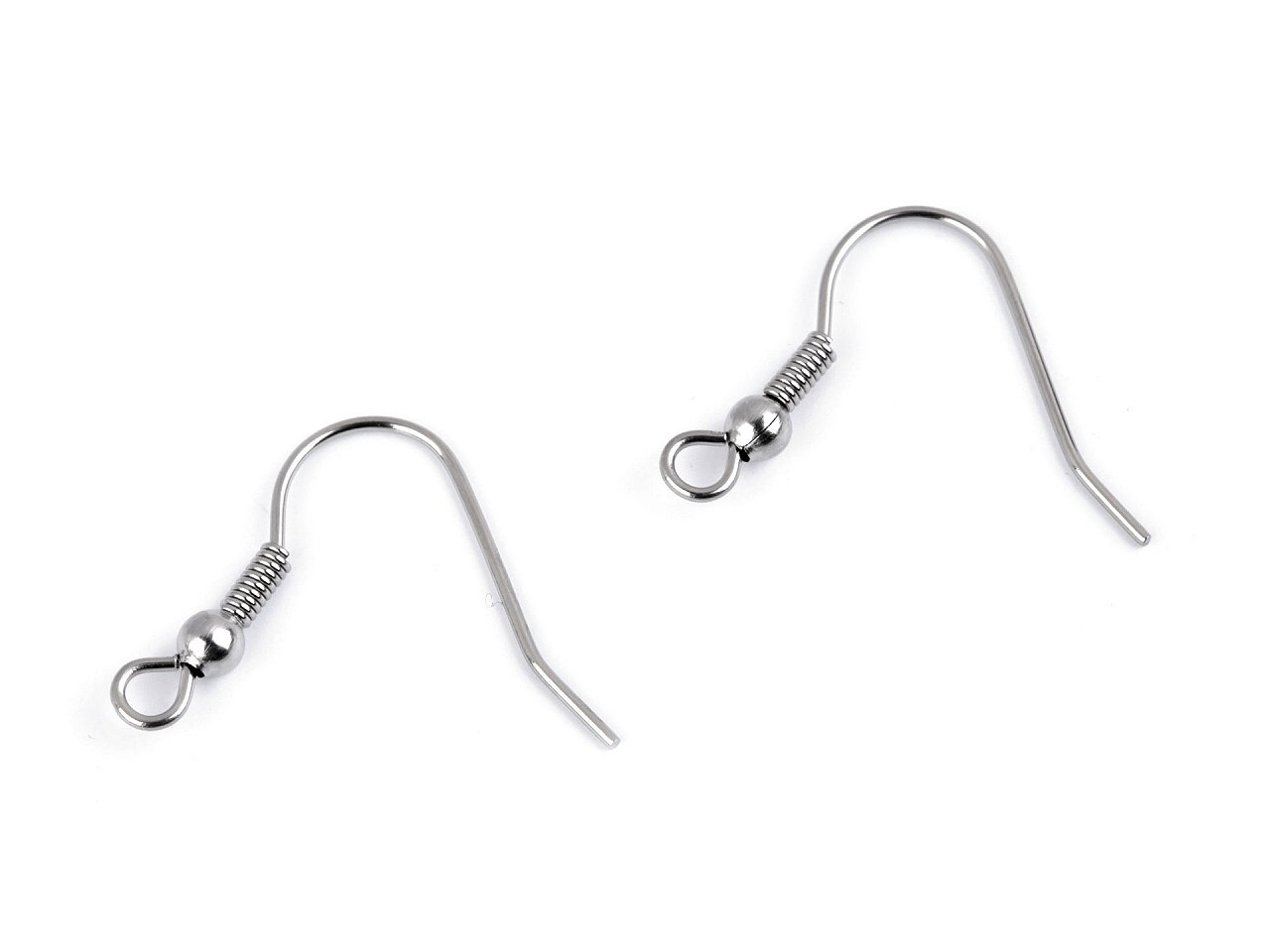 Afroháček s pružinkou a kuličkou z nerezové oceli - 4 ks - platina