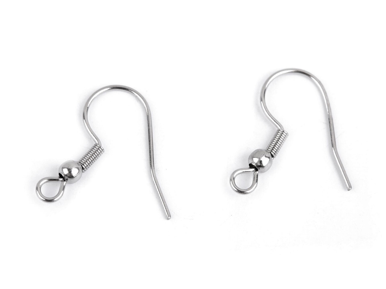 Afroháček s pružinkou a kuličkou z nerezové oceli - 300 ks - platina