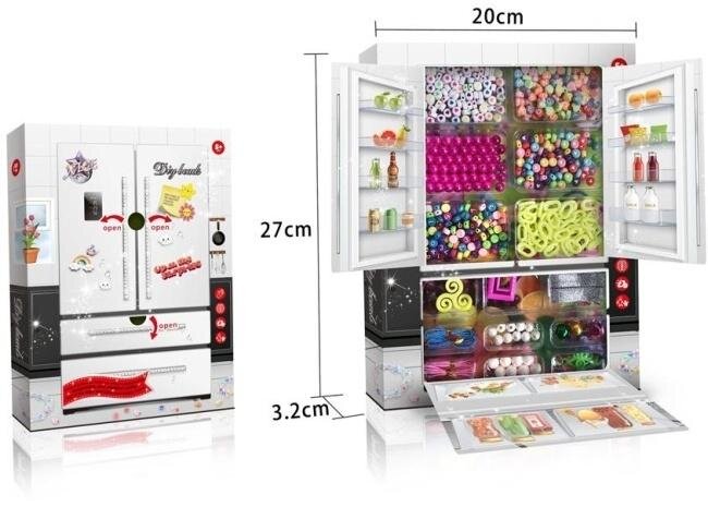 Odkryj świat kreatywnej zabawy z tą uroczą, miniaturową lodówką! Z zewnątrz przypomina prawdziwą chłodziarkę, ale jej wnętrze skrywa prawdziwe bogactwo inspiracji. Po otwarciu drzwi Twoje dziecko znajdzie mnóstwo kolorowych koralików o różnych kształtach i rozmiarach, miękką mulinę w wielu odcieniach oraz inne drobne akcesoria niezbędne do tworzenia unikalnych bransoletek, naszyjników i innych ozdób. Ta kompaktowa lodówka (20 cm szerokości, 27 cm wysokości i 3.2 cm głębokości) to nie tylko źródło kreatywnych materiałów, ale także praktyczny sposób na ich przechowywanie i organizację. Zabawa z nią rozwija wyobraźnię, zdolności manualne i cierpliwość. To idealny prezent dla małych artystów, którzy uwielbiają tworzyć własne, niepowtarzalne dzieła sztuki!