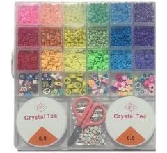 Odkryj nieograniczone możliwości kreatywnego tworzenia biżuterii z naszym wszechstronnym zestawem koralików! Ten obszerny zestaw zawiera bogactwo koralików w pełnej gamie kolorystycznej, od klasycznych okrągłych, po modne koraliki heishi i urocze zawieszki o różnych kształtach. W zestawie znajdziesz również koraliki z literkami, które pozwolą na personalizację bransoletek i naszyjników. Dołączone akcesoria, takie jak żyłka Crystal Tec o grubości 0.8 mm oraz nożyczki, sprawiają, że zestaw jest gotowy do użycia od razu po otwarciu. Idealny dla każdego, kto chce rozwijać swoje pasje artystyczne i tworzyć unikalne, ręcznie robione ozdoby. Doskonały zarówno dla dzieci, jak i dorosłych.