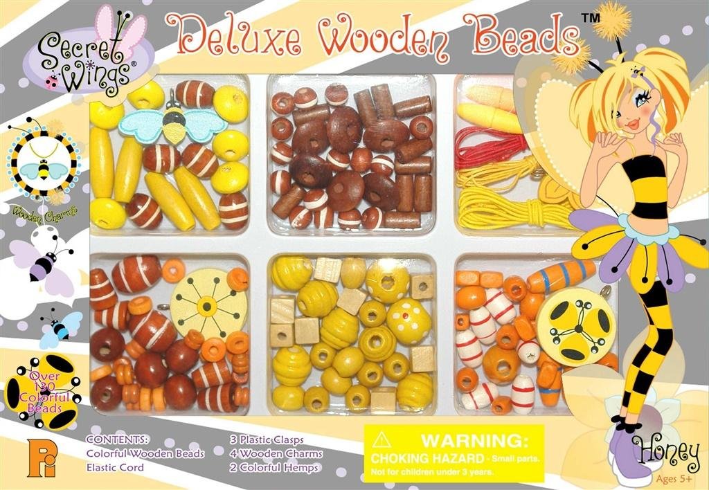 Komplet Deluxe Wooden Beads zawiera ponad 120 koralików, a także elementy do łączenia bransoletek i naszyjników i kolorowe sznurki. Tak duża ilość elementów pozwala na wykorzystanie zestawu do pracy w większej grupie! Zestawy Secret Wings to świetny pomysł na urozmaicenie przyjęcia dzieciaki mogą wspólnie wykonać biżuterię, a potem zabrać ze sobą w ramach drobnego upominku!