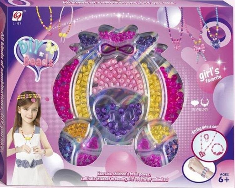Półprzezroczyste koraliki wraz z żyłkami do tworzenia unikatowych bransoletek. Koraliki w kształcie m.in.: okrągłym, serduszek i motylków Produkt zapakowany w kartonowe opakowanie z przezroczystym okienkiem. Zabawka dla dzieci od 6 lat. Podane wymiary są wymiarami opakowania.