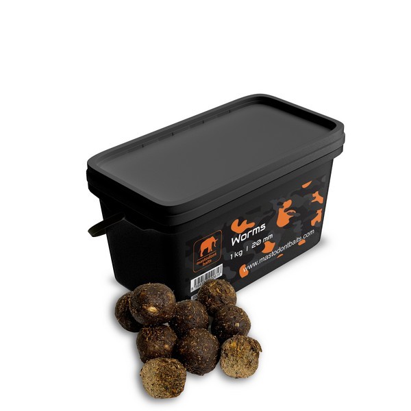 Worms je naprosto unikátní svým složením a chlupatou, hrubou strukturou boilie. Tato nástraha je vhodná na všechny typy vod, téměř celoročně, od jara do podzimu. Je vhodné na dlouhé krmné kampaně, kdy přiláká všechny kapry v okolí. Toto boilies obsahuje vysoké množství živočišných proteinů, extrakty z mořských živočichů, směs pikantního koření a prvotřídní esence, ze kterých dominuje zejména patentka. Jedinečná chlupatá struktura směsi představuje pro kapry doslova klam, kdy nástrahu dotykem vousů i zrakem, pokládají za shluk patentek nebo nitěnek, což je pro ně zcela přirozená potrava. Staňte se součástí naší revoluce v lovu na živočišné boilies