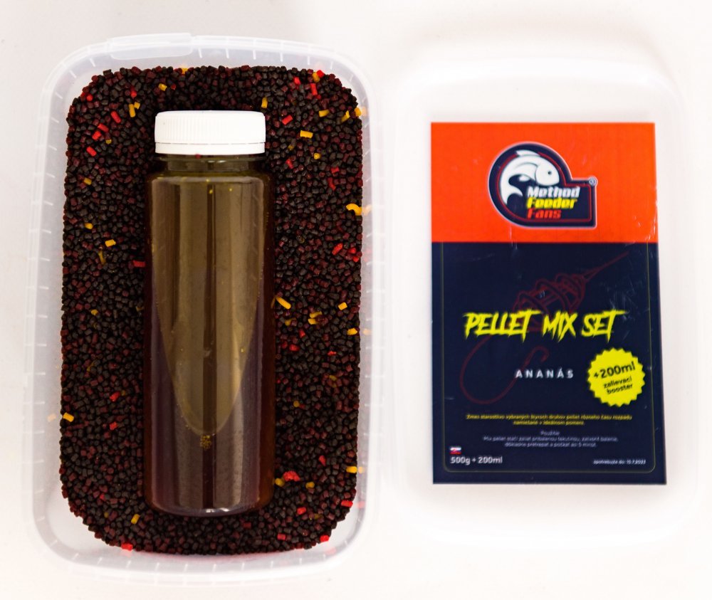 Pellet Mix Set 500g a 200ml klasik liquidu ve vaničce obsahuje vše, co potřebujete k Vašemu úspěšnému lovu. 500g směs pečlivě vybraných čtyř druhů 2mm pelet různého času rozpadu namíchané v ideální poměru. Mix pelet stačí zalít přibalenou 200ml zálivkou, zavřít krabici, důkladně protřepat a počkat pár minut. Jednoduché. Vše je připravena k naplnění metod feeder krmítka.