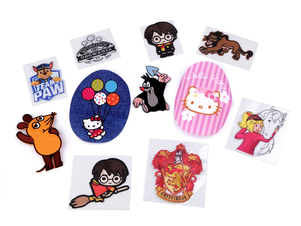 Balení obsahuje dětský mix dezénu i velikostí. Nažehlovačky mají šíři 35 - 85mm, výšku 55 - 115 mm. Jedná se o značkové motivy.