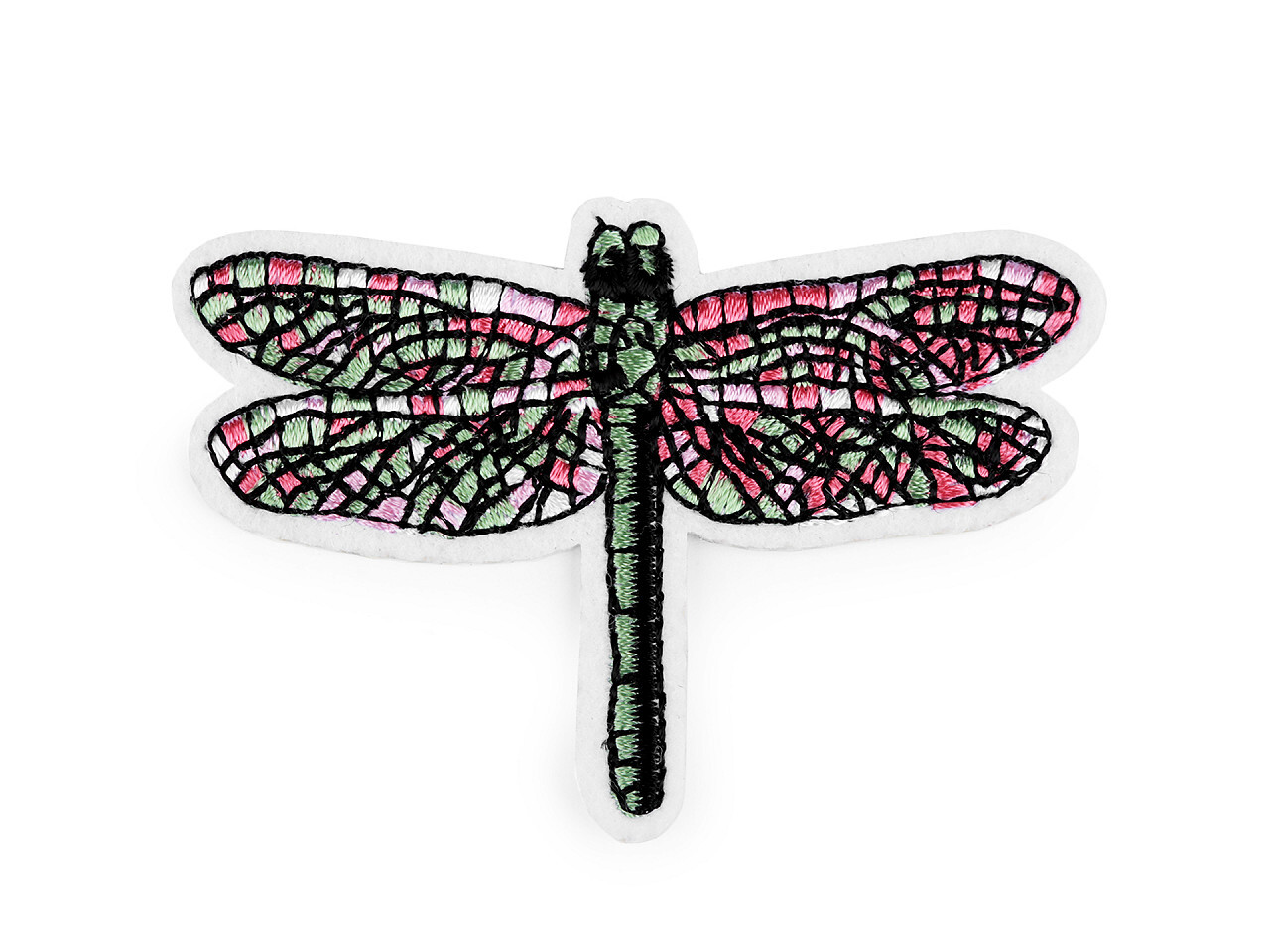 Nažehlovačka s vážkou je velice kvalitní, má detailní celoplošnou výšivku. Oživí oblečení i doplňky.