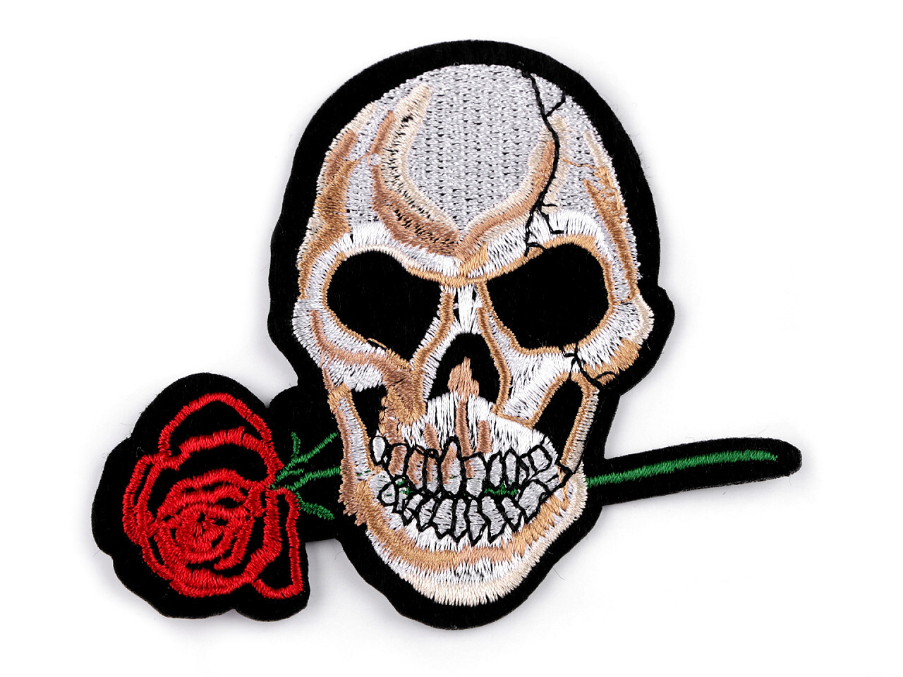Nažehlovačku s obrázkem lebky ocení každý, kdo se nebojí ukázat svůj životní postoj. Je velmi kvalitní a celoplošně vyšívaná. Hodí se k aplikaci na bundy, mikiny, trička nebo vlajky. Černé části na nášivce jsou sametové a okraje olemované proti třepení. Na zadní straně je ochranná fólie.